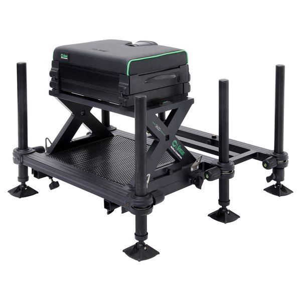 Deux pieds télescopiques permettent un ajustement précis de la hauteur afin de s’adapter parfaitement au poste de pêche.